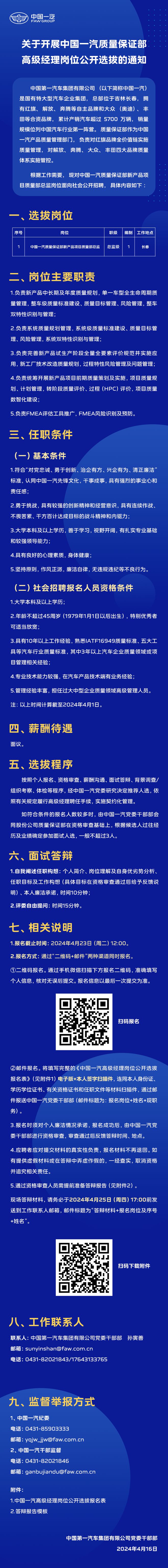 中国一汽质量保证部高级经理岗位公开选拔
