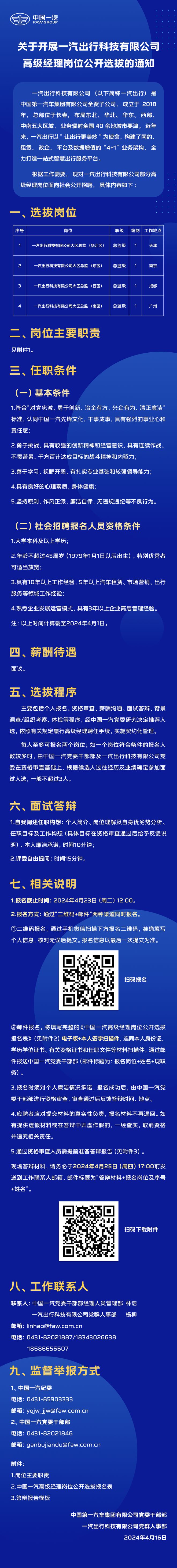 一汽出行科技有限公司高级经理岗位公开选拔
